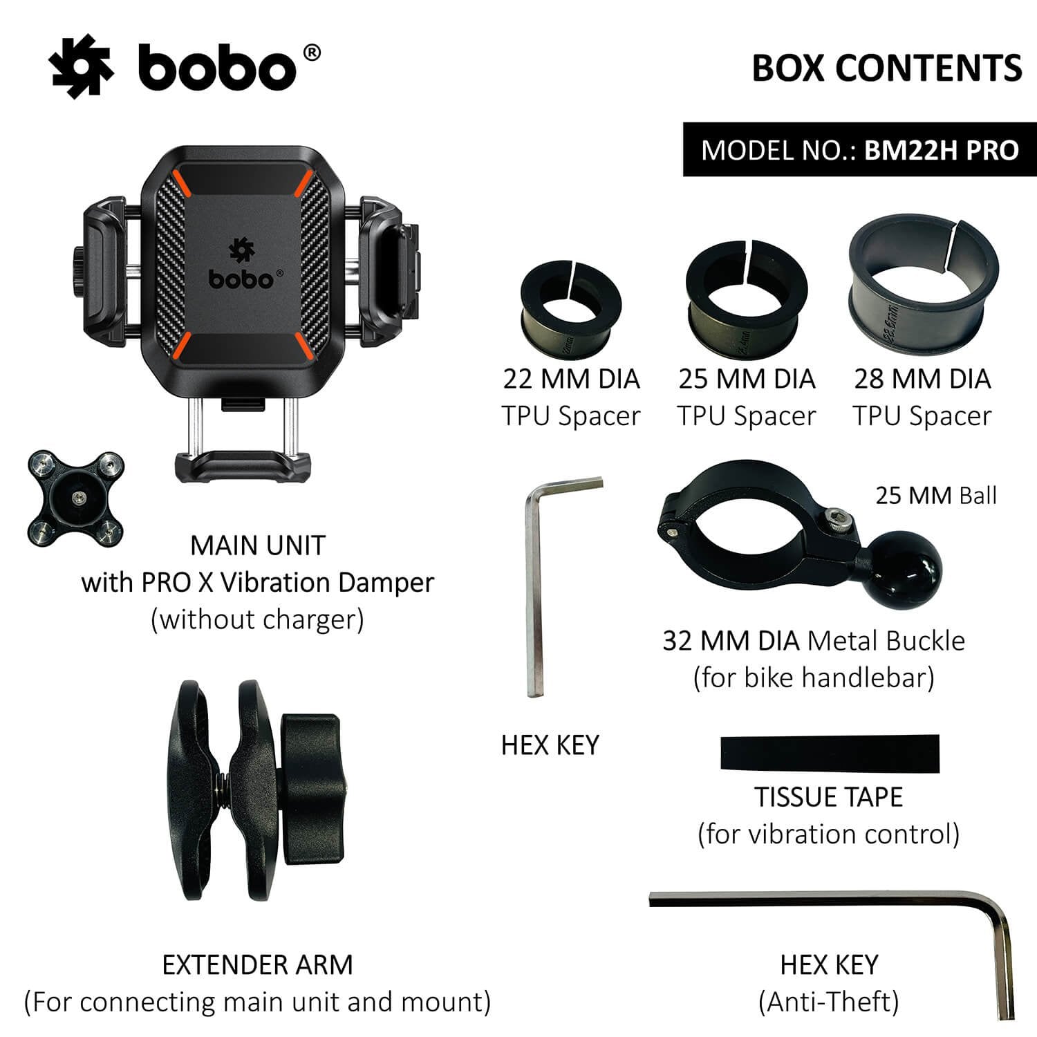 BOBO BM22H / BM22M PRO MOUNT ANTI-VIBRATION ANTI-THEFT – Ultra strong mount with anti-vibration shock absorbers and anti-theft double socket arm