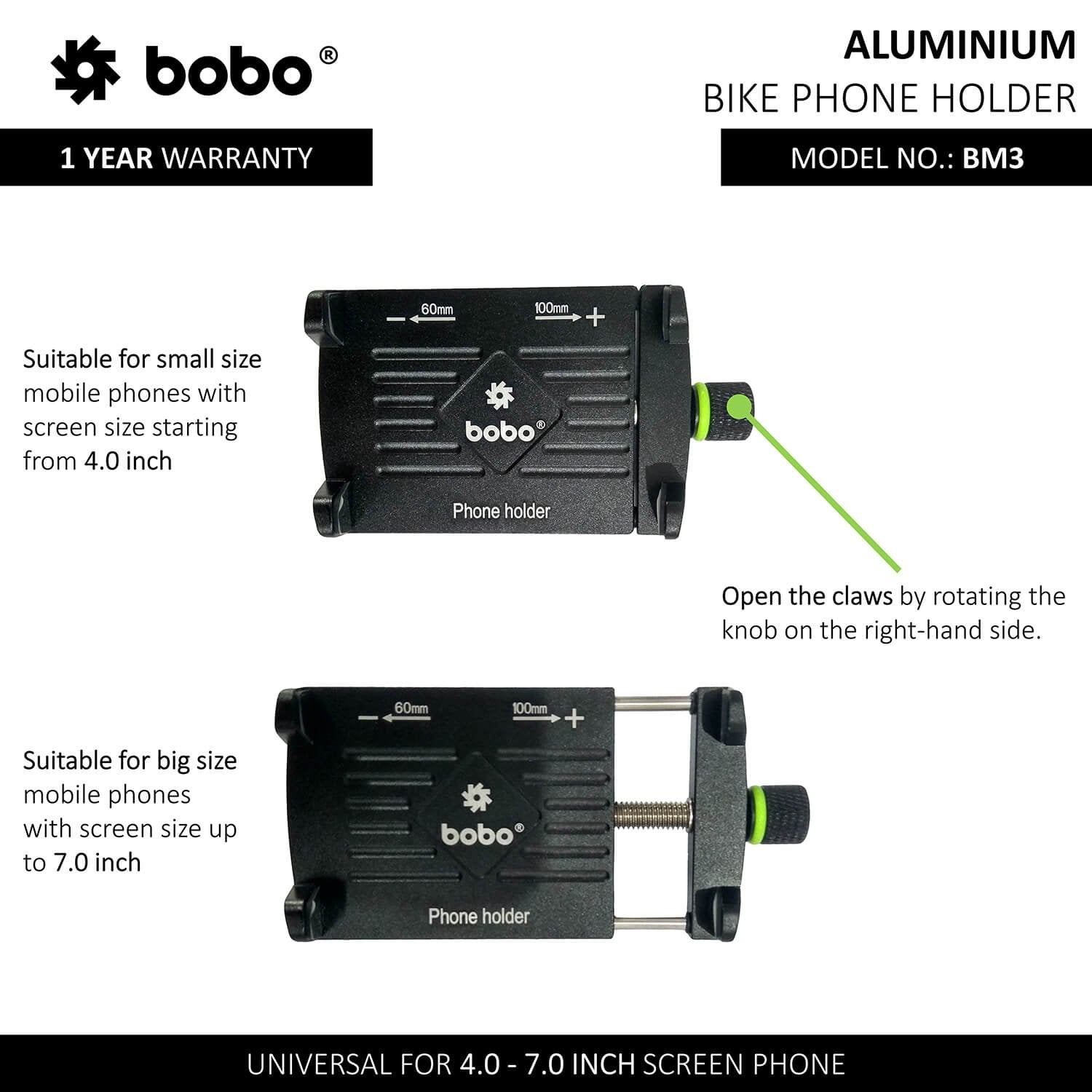 BOBO BM3 Claw-Grip Aluminum Bike Cycle Phone Holder Motorcycle Mobile Mount (Black)-BB-BM-003-001001