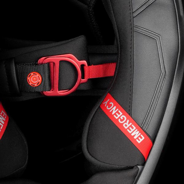 - Lightweight, aerodynamic design with thoughtful conveniences like intercom-ready pockets and emergency release.