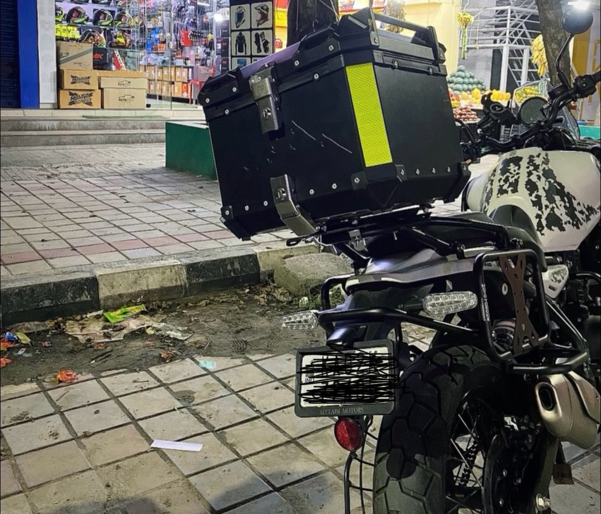 The LGP Adventure Top Box is the ultimate storage solution for any motorcycle adventurer. Designed for both Himalayan 411/450 and a wide range of other bikes, this top box combines durability, security, nd convenience. Whether you're navigating rough terrains or cruising on long highways, the 45L capacity, heavy-duty armor protection, and weather-resistant features will ensure your belongings stay safe and secure. With its easy universal fitment, you can quickly add this top box to your bike without the need for additional fittings, making it the perfect choice for adventure enthusiasts.