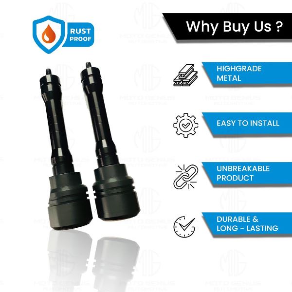 The Moto Genius Frame Slider Crash Protection Guard is an essential accessory for TVS Apache RR310 owners who want to protect their bike from damage during falls, accidents, or low-speed slides. This product is designed specifically for the RR310 model to provide excellent protection for the frame, engine, and fairings while maintaining a sleek and sporty aesthetic.