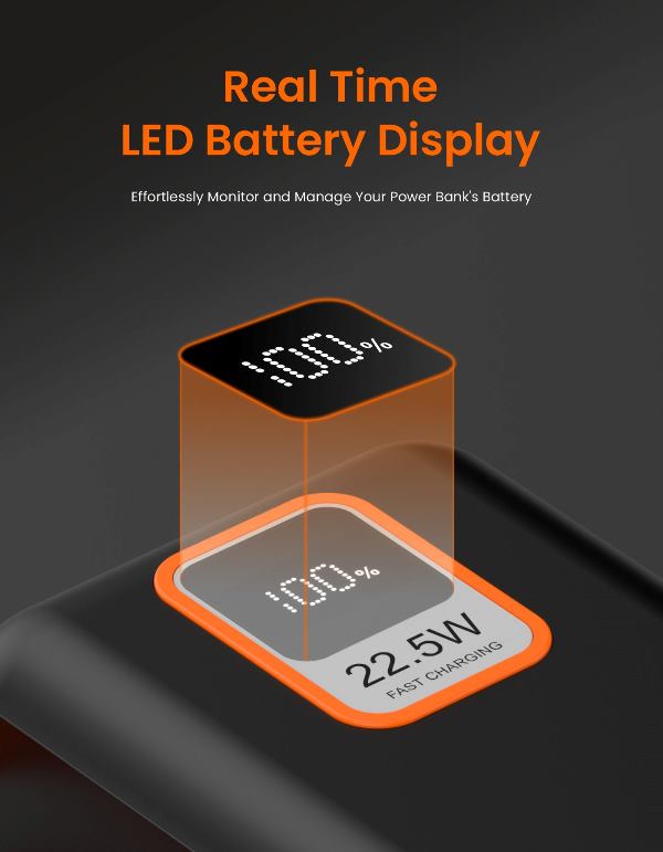Keep track of the exact remaining power with the built-in LED indicator, helping you plan your charging sessions efficiently. -