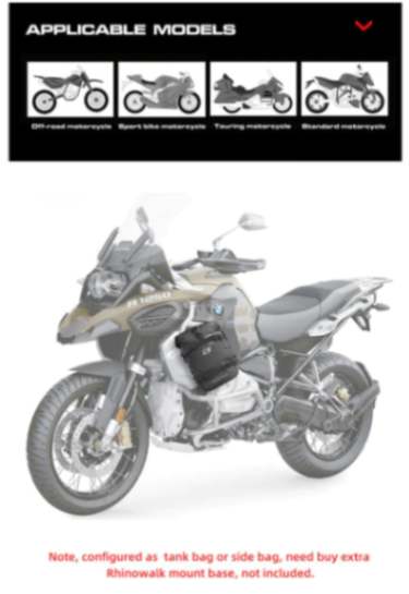 - Mounts as a tank bag with ADV base