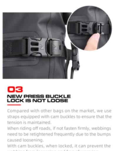 Finally a luggage system at the right price. Easy to fit with quick-release buckles attached to web loops secured to the bikes. The 6L ADV bag is an essential item to carry gear on your motorcycle on those short and long trips. A wide-mouth roll-top system makes it water and dustproof.