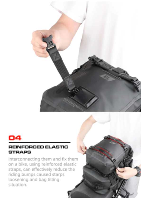 Rhinowalk Motorcycle Backpack 8L Waterproof Motorbike Seat Tail Bag for Adventure Welded Seamless Side Saddle Motopack (MT2208)