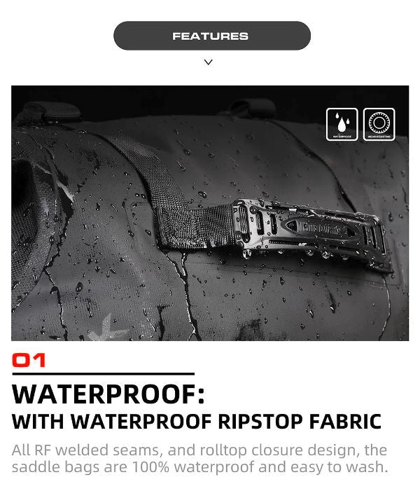 Rhinowalk Motorcycle Waterproof Saddle Bag 48L – ADV Touring Tail Seat Luggage (Pair-Set) MT1448