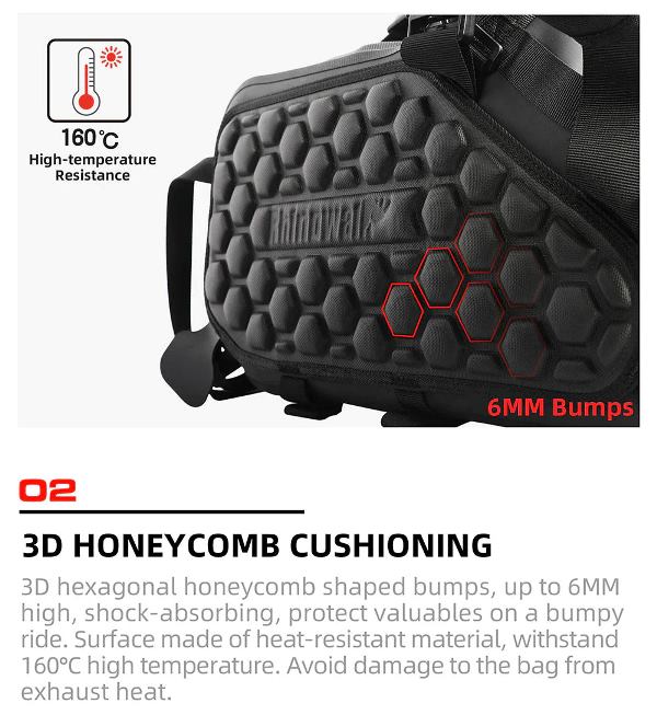 • Versatile Fit: Adjustable positioning for the two bags ensures compatibility with most motorcycles, including ADV, touring, and off-road bikes. Keeps bags clear of the exhaust and prevents burn risks.