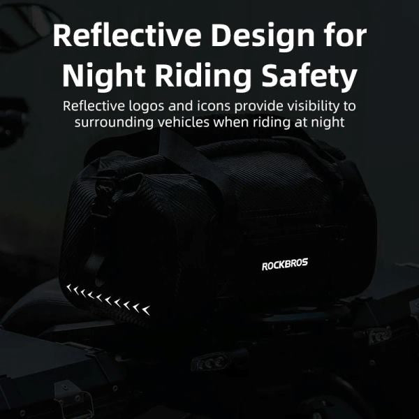 - Enhanced Visibility: For added safety during night rides, the bag is equipped with reflective logos and icons. These features help make the bag more visible to surrounding vehicles, improving your safety on the road, especially in low-light conditions.