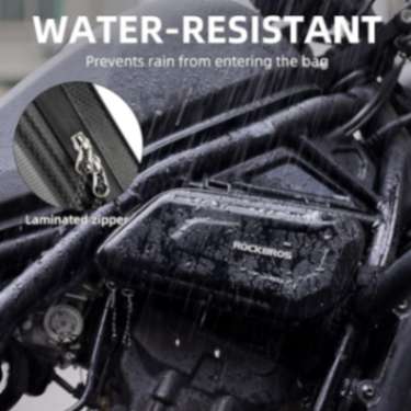 - Water-resistant. Built in PU water resistant fabric, the motorcycle storage bag keeps inside dry and outside easy to clean by simple wiping the surface. Moreover, the laminated zipper prevents rain from entering the bag.