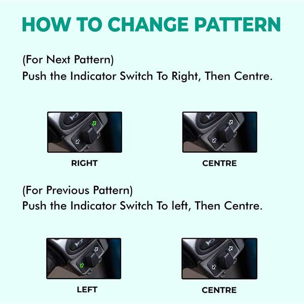 - To Switch ON/OFF the Flasher: Push the indicator switch LEFT, RIGHT, and CENTER (or RIGHT, LEFT, CENTER to turn OFF)