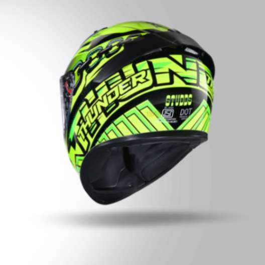 Studds Thunder D5 Decor Matt Green & Yellow With Spoiler - Full Face Helmets