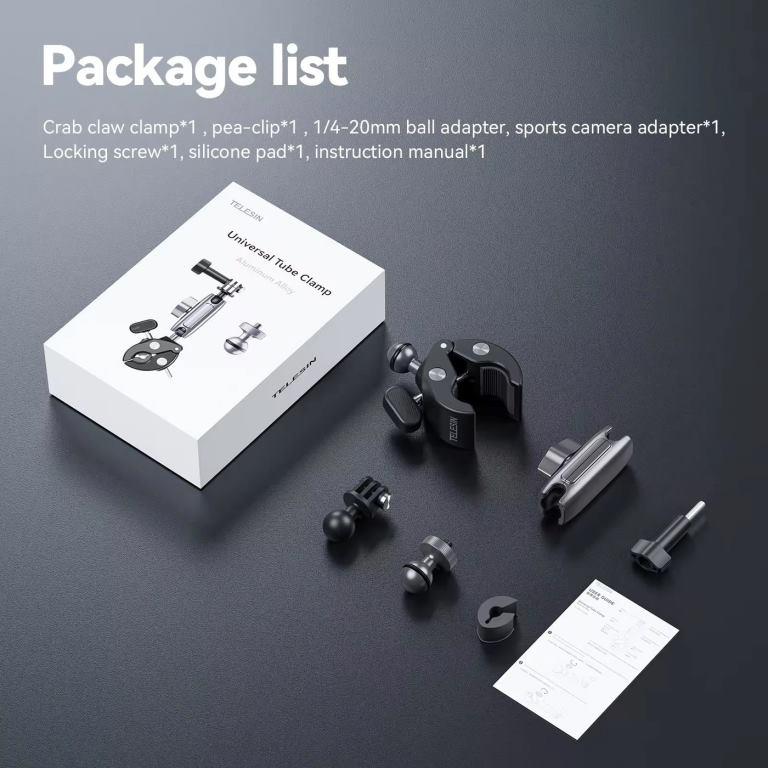 Enhance your action camera adventures with the Telesin Clamp Mount with Ball Head Mount. Designed specifically for DJI Action 4&3, this mount allows for versatile positioning and capturing of high-quality footage. With its 1/4 thread, you can easily attach your camera and start recording your epic moments.