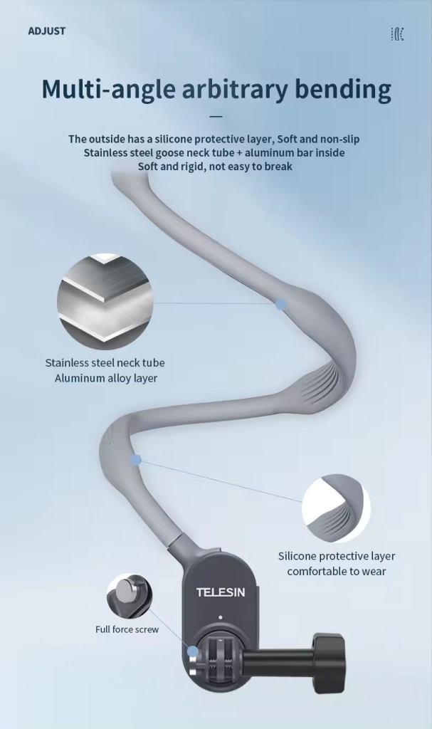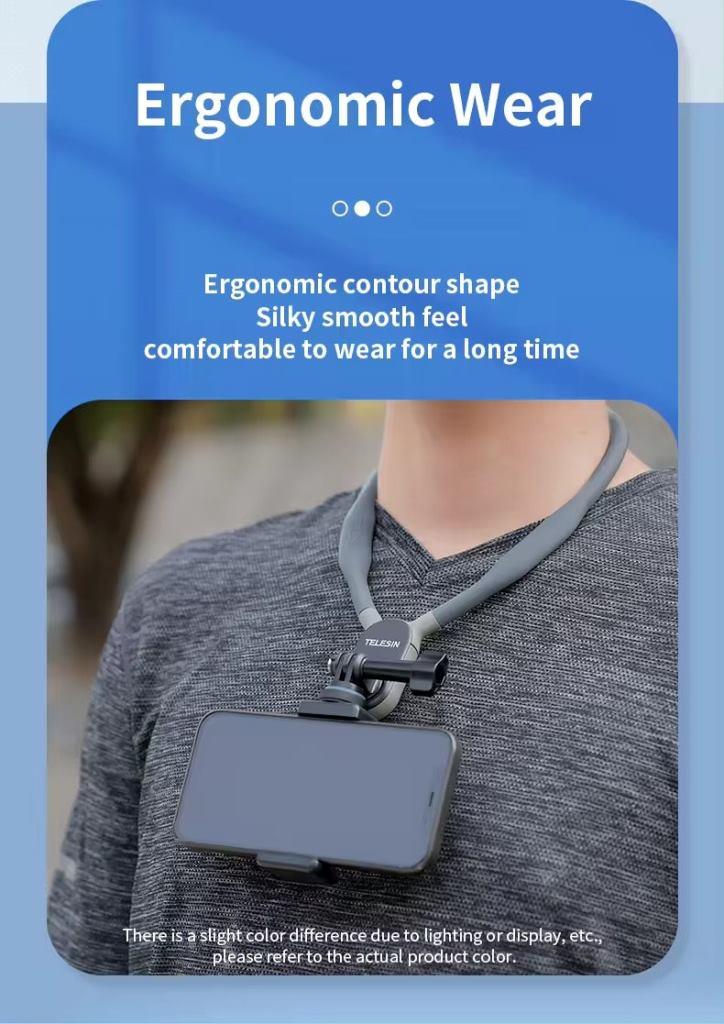 The TELESIN Magnetic Silicone Neck Holder Mount offers hands-free convenience for capturing footage with cameras and smartphones. With strong magnets and a durable silicone design, it securely attaches to any surface, providing a stable and versatile option for filming. Ideal for athletes, vloggers, and adventurers.