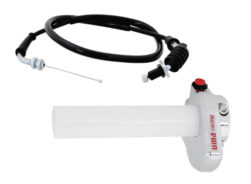 The UMA Racing Quick Throttle for Scooters (Part No: 02Q00020) is a high-performance upgrade designed to enhance throttle response and provide a more aggressive ride. Ideal for riders looking for quicker acceleration and more immediate throttle control, this quick throttle kit is engineered to reduce the amount of rotation needed to reach full throttle, allowing for faster and more precise acceleration.