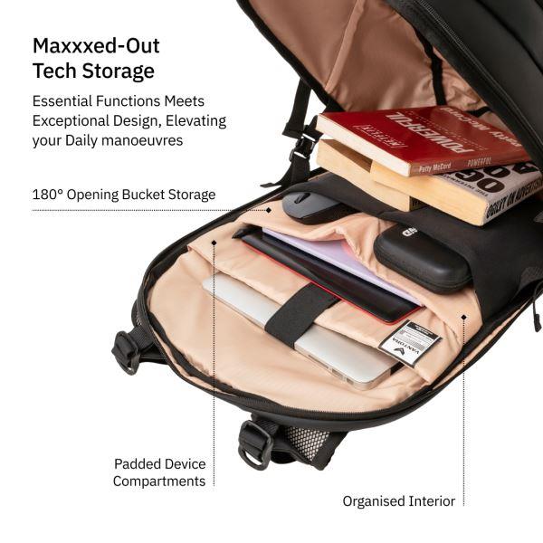 The Volen Backpack opens fully at 180 degrees, revealing your entire loadout in one scan. No stacking. No friction. The bucket-style tech compartment enables fast, organized packing—ideal for electronics, accessories, and travel essentials.
