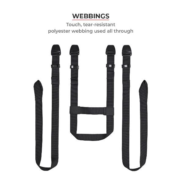 - High Tenacity Polyester Webbing that is tough and tear-resistant