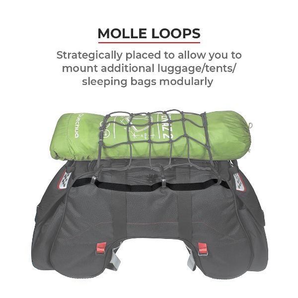 The Viaterra Claw Tailbag features a MOLLE loop system and compression straps that allow you to securely attach additional gear, such as: