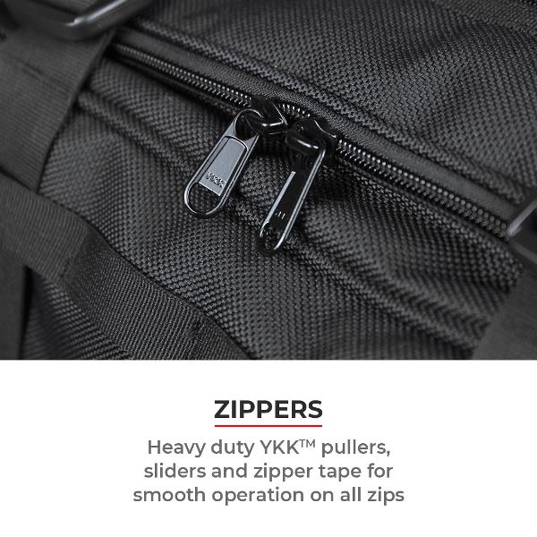 - Genuine YKK™ zippers, sliders, and pullers for smooth and long-lasting performance