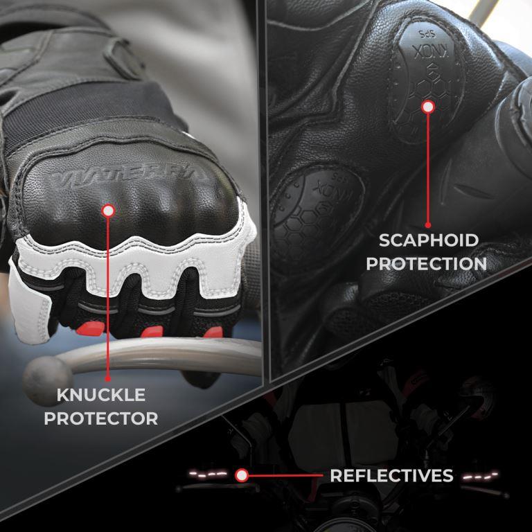 We have also included accordion on the fingers for additional stretch & comfort when operating the clutch and brake. An additional memory foam layer is placed under the knuckle protector with enhanced coverage for added comfort.