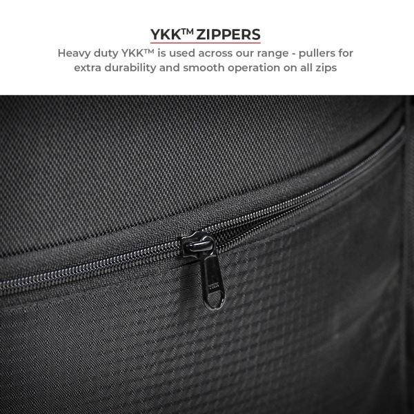 - Zippers : Genuine YKK™ sliders, pullers & tape