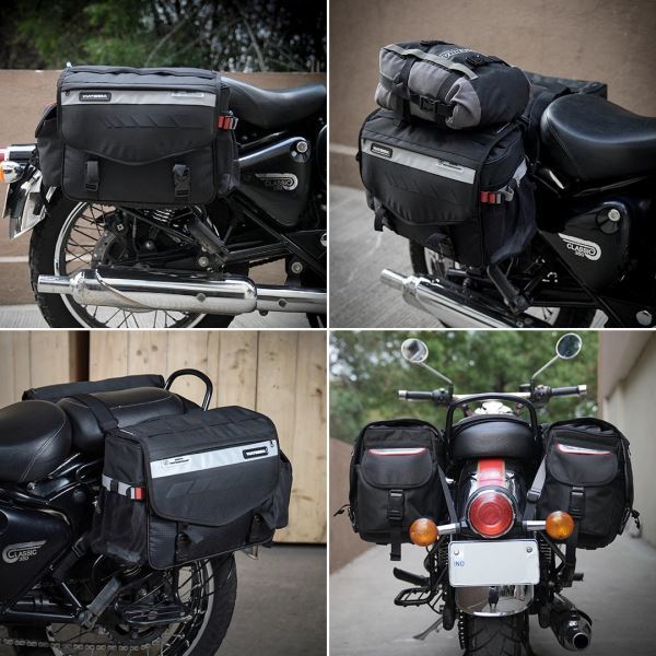 Built for motorcyclists who need a compact yet rugged luggage solution, the Leh Mini WP Saddlebags deliver the same 100% waterproof performance as their full-size counterpart, now in a more travel-friendly form. Designed to fit a wide range of motorcycles (especially those with straight exhausts like Royal Enfields and Triumph Bonnevilles), these bags also suit up-swept exhausts when paired with a saddle rack for safe clearance.