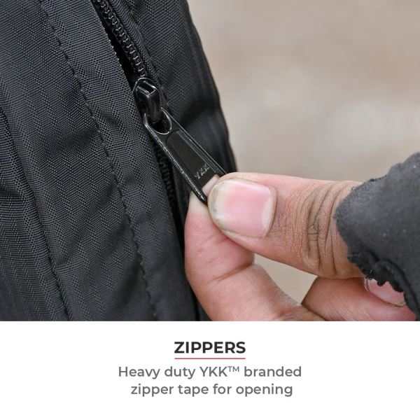 - Genuine YKK™ zippers and pullers for smooth, long-lasting performance