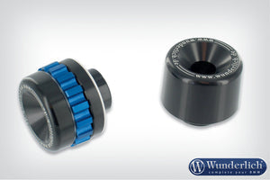 The entire adjustment mechanism is housed in the right handlebar end weight and increases the lateral pressure on the gas handle by its setting.Teflon-mounted adjustment mechanism. Simple conversion.For vehicles with original hand guards. The complete aluminum set consists of a CruiseControl and matching handlebar end weight.