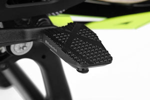 Many find that the standard pedal of the foot brake lever is unfortunately too small. Often, it's difficult to locate precisely, and unfortunately, slipping with the toe of the boot is almost inevitable. Slipping or, worse still, stepping into nothingness, becomes a thing of the past with our brake lever extension. Its high-quality craftsmanship also makes it visually appealing: the non-slip milled rifling emphasizes the adventure look and provides excellent grip – not only in wet conditions and off-road.