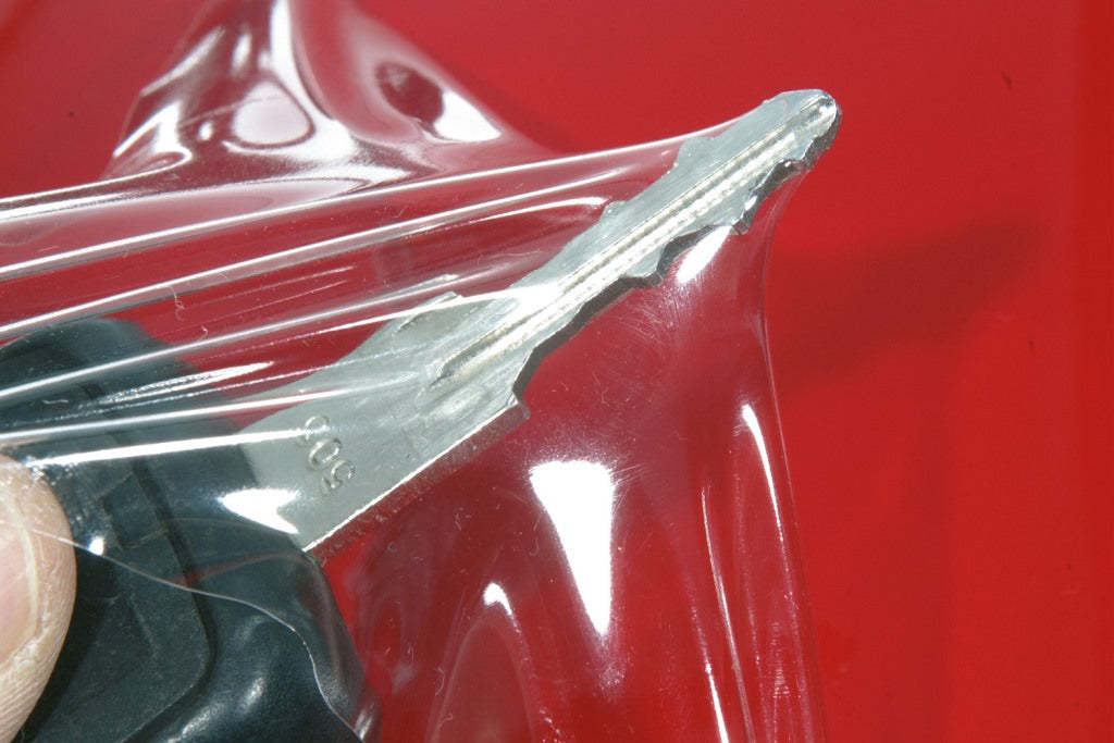 - UV permeable(!) means that the protected parts of the paintwork will, as usual, change color over the years. This outstanding feature of the material means that no differences in color between protected and unprotected paintwork will emerge should you ever want to remove the film.