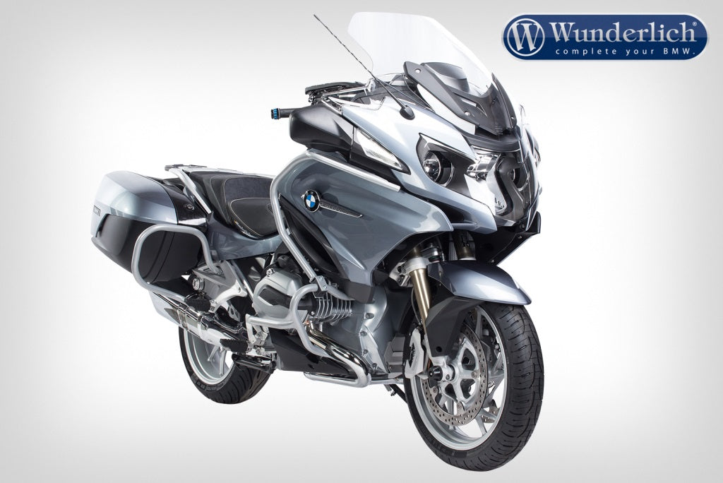 Wunderlich's rear protection bars for the R1200/1250 RT LC - not only offer great protection for expensive, original RT LC saddlebags,but also prprovide genuine visual highlight. What has long been standard equipment for authority motorcycles is now available for civilian use. Made from rigid, seamless precision tubular steel, Wunderlich engineers have collaborated with partners, Hepco Becker, to develop a crash bar that protects the side panels and bags of the RT against bumps and falls.