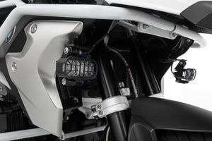Thanks to the two individual LEDs per headlight and the improved Wunderlich lenses marked with our brand logo, they have an unmistakable light design that is recognizable from afar. The two LEDs also provide redundancy: If, against the odds, one of the two fails, the other continues to work. We also equip the auxiliary and fog lights with fold-down, effective protective grids as standard - safe is safe!