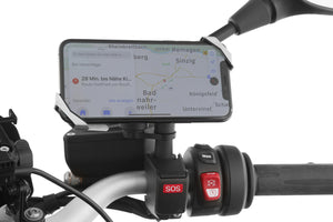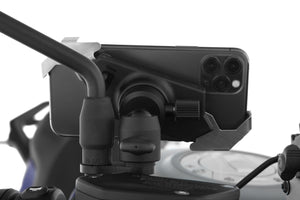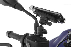 The MULTICLAMP mirror clamp attaches to the left or right rear-view mirror. It functions as a base for accommodating smartphones or ActionCams.