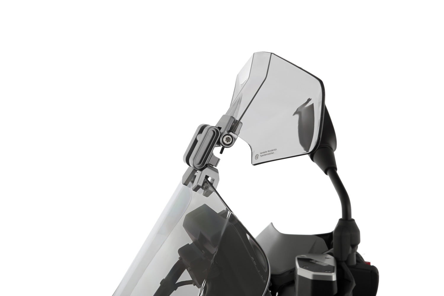 The main problem with any original screen is that the upper edge cannot be adjusted to cater to individual needs and to eliminate buffeting and turbulence. We took the principle of screen add-ons and significantly improved upon it.