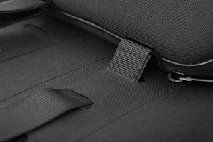 The DRY BAGs are closed using an additionally integrated end cap, which is manufactured in the same way as the tank bag itself. The protective cap also covers the top side of the bags as well as the zips. This construction ensures they remain completely waterproof.
