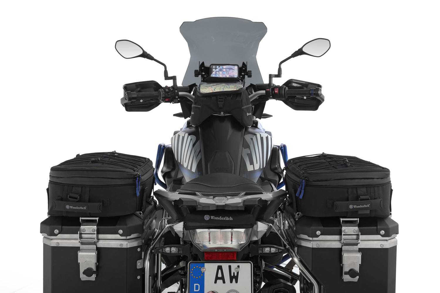 The base of the top bag is equipped with an all-around, dimensionally stable insert. They therefore offer a secure hold and protection for your luggage and don’t flutter at high speeds. This means they don’t make any sounds caused by fluttering at high speeds. They’re also useful as very comfortable armrests for the passenger. The Wunderlich-typical blue lining forms a contrasting background against which you can easily see small travel utensils. The zip is water-repellent and fitted with ergonomically shaped, easy-to-grip blue zips that are easy to operate even with gloves on.